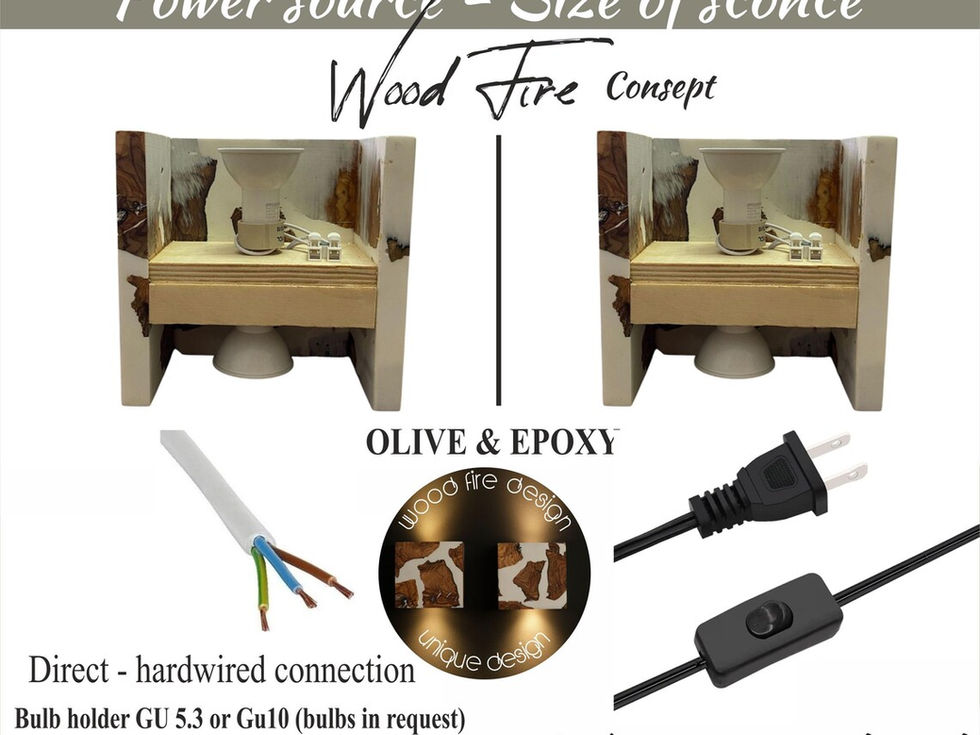 Add a stunning natural touch to your home with this handcrafted wall sconce made from genuine olive wood and crystal-clear epoxy resin. Each piece is one-of-a-kind, highlighting the rich grain of olive wood, brought to life with a modern, artistic twist.